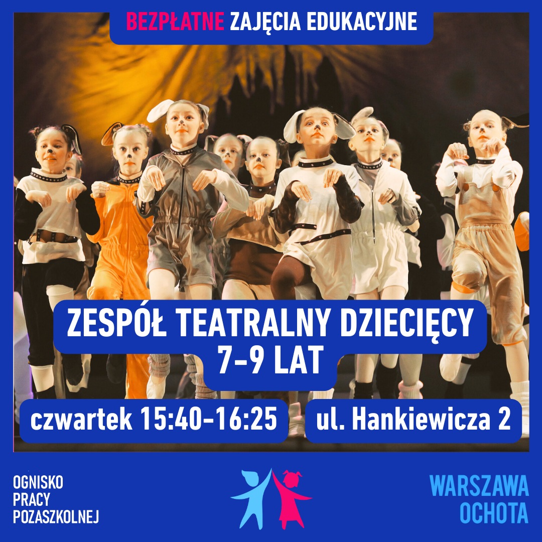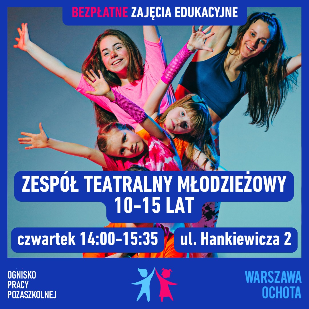 • Witamy w Ognisku Pracy Pozaszkolnej w Warszawie przy ul. Majewskiego 17. Zapraszamy na bezpłatne zajęcia: taneczne, muzyczne, teatralne, plastyczne, informatyczne, sportowe, edukacyjne, językowe (angielski, niemiecki).